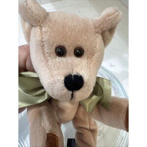 VTG Boyds Bears-J.B Bean 10” Bear Plush Beanie W/Green Bow 5-Way Jointed