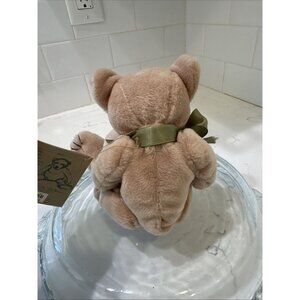 The product is a vintage 10" Boyds Bears plush bear beanie with a green bow. This collectible bear from the 1980s is part of the Boyds Bears franchise and is fully jointed with 5-way movement. Perfect for all occasions, this beige bear with brown eyes is a nostalgic addition to any teddy bear collection, especially for collectors of retired and 5-way jointed bears. The plush material and original design make it a charming and unique piece for any animal-themed display.