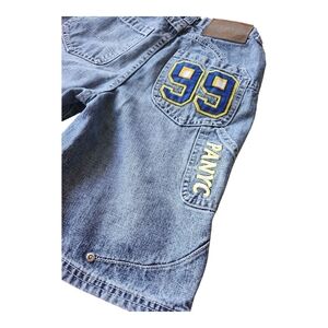 VTG Boys Y2K Panyc Blue Denim Shorts Patches 99 Size 8