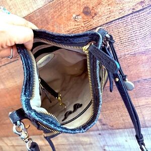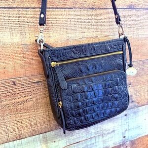 VTG Brahmin Cleo Melbourne Black Crocodile-Embossed Crossbody Bag