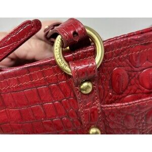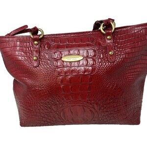 VTG Brahmin Leather Shoulder Tote Bag Purse Red Mock Croc Embossed Stunning!