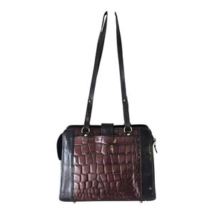Elevate your style with this stunning vintage Brahmin tote handbag. Crafted from high-quality leather, this rare piece features an animal print pattern in brown and black tones. The handle and strap are also in brown, while the hardware adds a touch of elegance.