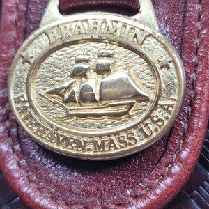 This Brahmin vintage satchel combines classic style with functionality. Crafted from rich leather and woven detailing, it offers ample space for essentials. The brass hardware adds a touch of elegance, making it a versatile choice for those seeking both style and practicality in their handbag collection.