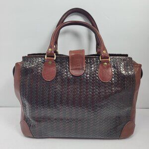 VTG Brahmin Women's Dark Brown Leather Basket Woven Handbag Made in USA