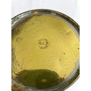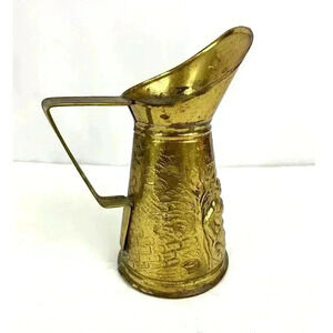 VTG Brass Embossed Pitcher Made in England Pub Scene 8.5" Hammered