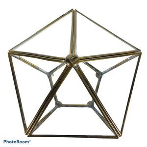 VTG Brass Glass Prism Terrarium Pentagon Tabletop Trinket Display Case Holder