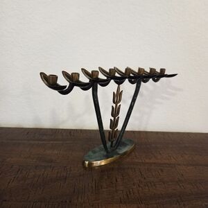 VTG Brass Menorah Made in Israel Judaism Jewish Brass Green Enamel Candlestick