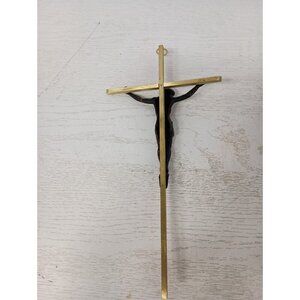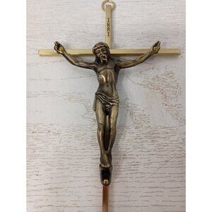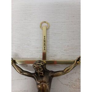 VTG Brass Metal Inri Crucifix Cross w/ Jesus Christ Religious Wall Hanging Decor