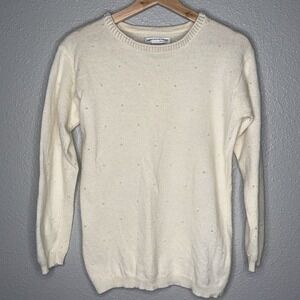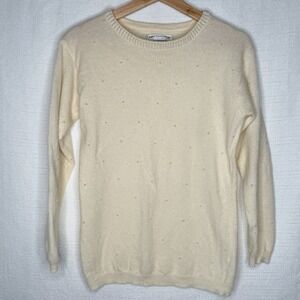 VTG Breckenridge Cream Angora Lambswool Pearl Beaded Pullover Sweater Womens PM