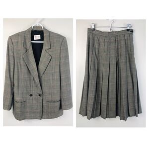 VTG Bretton Place Skirt Suit Womens 8 Gray Tweed Wool Academia 100% Wool Preppy