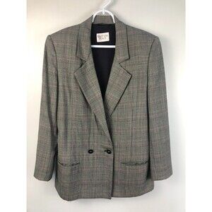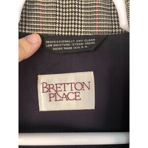The VTG Bretton Place Skirt Suit in women's size 8 is a stylish and classic ensemble made from 100% wool in a sleek gray color. This preppy suit includes a long-sleeved jacket with a double-breasted cut and shoulder pads, paired with a matching skirt that falls to a regular length. The set is perfect for a business occasion, featuring a solid pattern and adorned with skirt pockets and a lined interior. With a vintage touch and retro themes of 80s and 90s style, this skirt suit from Bretton Place is a timeless addition to any lady's wardrobe.