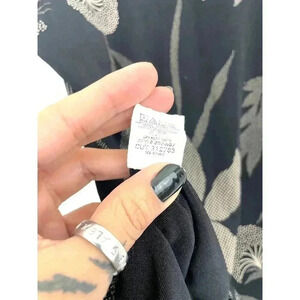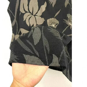 VTG Briggs Women's Black Beige Cling Top Short Sleeve Large Floral Y2K