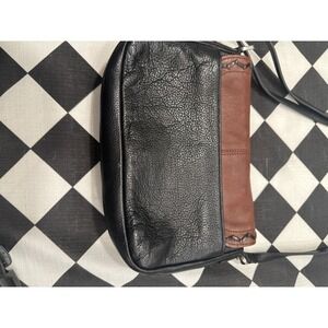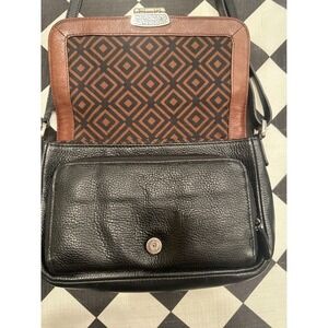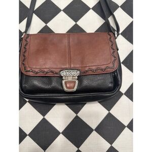 VTG Brighton Brown Black Leather Crossbody Shoulder Bag Buckle Detail