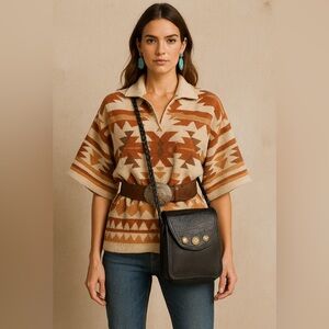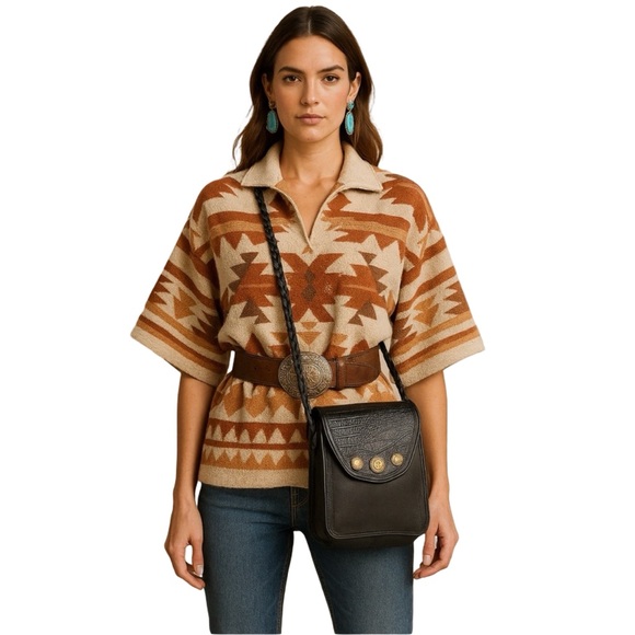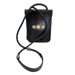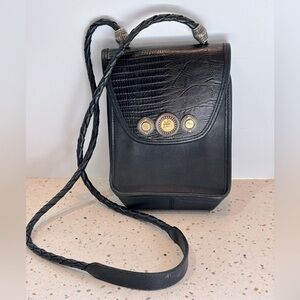 VTG Original Brighton Western Leather Crossbody Bag w Horse Embellishment and Braided Strap Like New