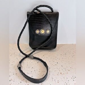 VTG Brighton Leather Crossbody Bag with Horse Embellishment and Braided Strap