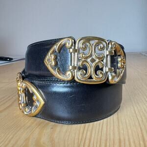 VTG Brighton Womens Belt Black Leather Medium 31-32”