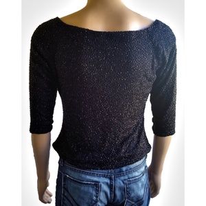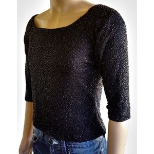 VTG Brilliante JA Womens Beaded Top SZ PXL Black