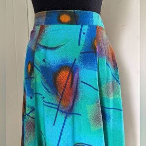 Description: VTG Britany Blu Celestial Mod Maximalist Skirt 60s 70s XS, retro abstract print, elastic waist, size/care tag missing but overall she's in great condition, big skirt energy, made in the USA