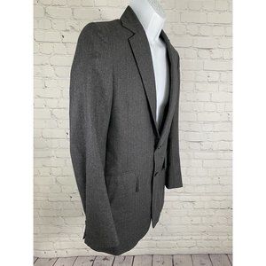 VTG Britches Of Georgetowne Dark Gray Wool Striped Two Button Blazer Jacket 38S