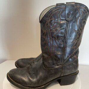 VTG Bronco Cowboy Boots Kids 2.5D Gray Conch Vegan Leather Western Cowboy USA