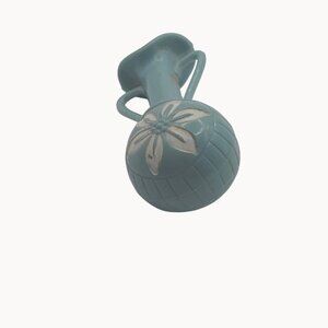 VTG Brooch 1950s MCM Stoneware Figural Floral Vase Pastel Blue White Pin Jewelry