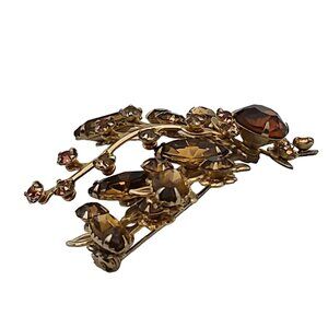 VTG Brooch 2PC Gold Tone Floral Root Beer Antique Style Art Deco WhimsyGoth Pin