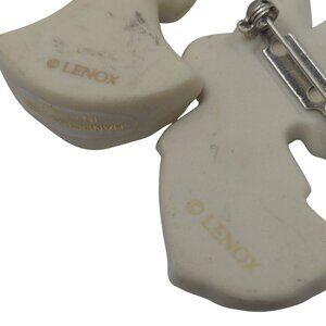 VTG Brooch 2PC Lenox White Stoneware Porcelain Angel GoldTone Religious Keepsake