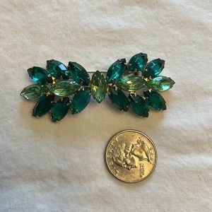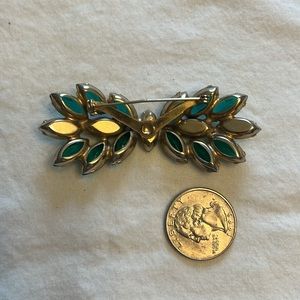 Vintage green gem brooch. No flaws. Excellent vintage condition. Quarter is for size reference.