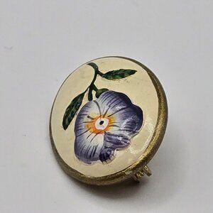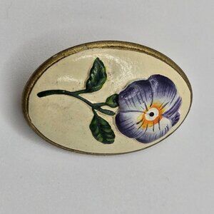 VTG Brooch Art Nouveau Oval Ceramic Hand Painted Floral Pin Jewelry Fairy Boho