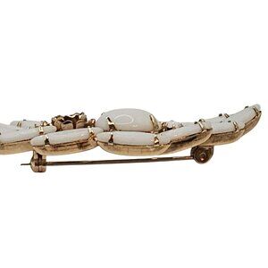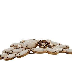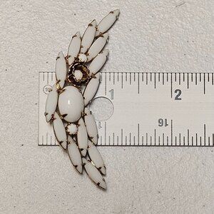 VTG Brooch Elegant Regency Retro White Milk Glass Gold Tone Leaf Floral Classy