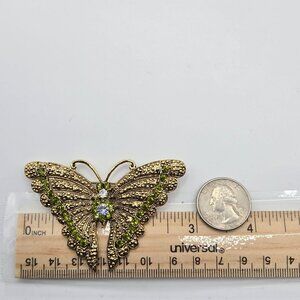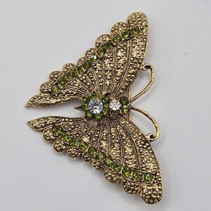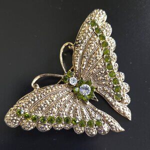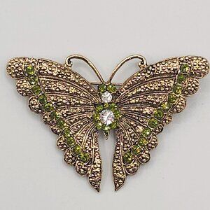VTG Brooch Fairycore Spring Beautiful Gold tone Sparkling Green White Rhinestone