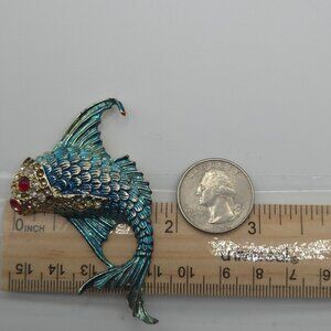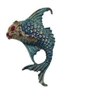 VTG Brooch Fish Enamel Pave Crystal Rhinestone Ocean Sea Life Aquatic Retro Pin