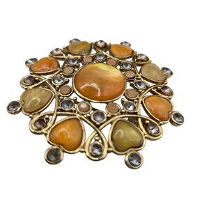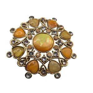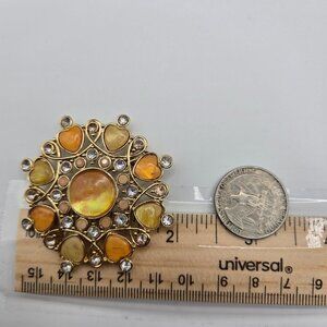 VTG Brooch Gold Tone Filigree Fall Harvest Amber Peach Rhinestone Heart Love Pin