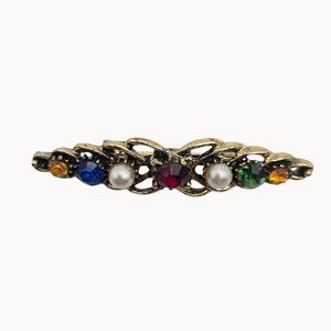VTG Brooch Gold Tone Multicolor Rhinestone Elegant Regencycore Classy Bar Pin