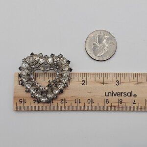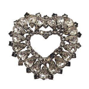 VTG Brooch Heart Shape Love Gift Sparkle Rhinestone SilverTone Romance Glam Stmt