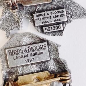 VTG Brooch Lot of 2 Signed Birds & Blooms Pewter Nature Hummingbird Birdhouse