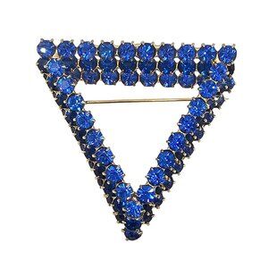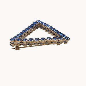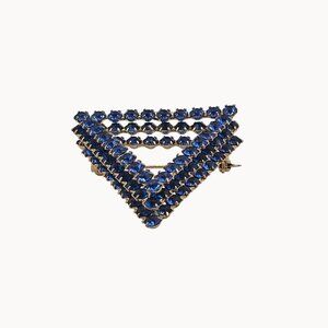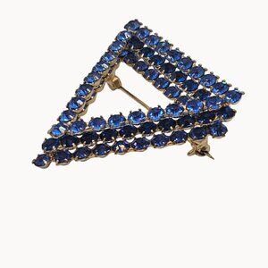VTG Brooch McM 60s Triangular Sapphire Blue Rhinestone Layered Retro Glamour Pin