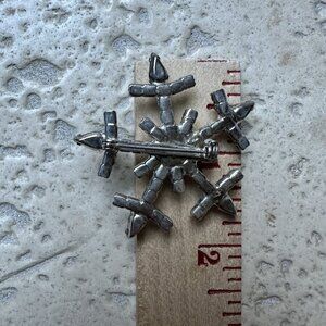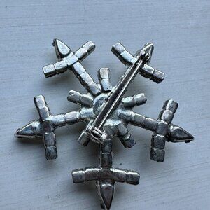 VTG Brooch Pin 1.75" Starburst Snowflake Aurora Borealis Rhinestone Silver Tone