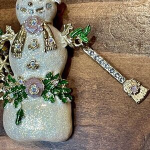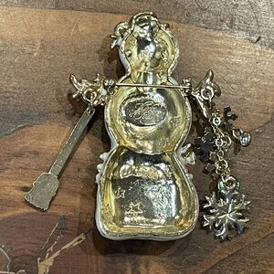 Vintage Snowman Brooch Pin Festive Jewelry Holiday Blazer Pendant Christmas Church Dinners Collectible Winter Classic Retro Grandmother Teachers Party Rhinestone Accessory Gift