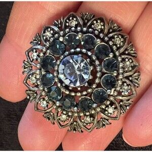 VTG Brooch Pin Silver tone Pewter w/ Blue Stones Star Flower Design. In good condition- see photos for details. Beautiful piece. I ship on the same or next day from a smoke free home. I make every effort to describe items honestly and price them fairly. Feel free to make an offer or ask any questions. Im happy to help.