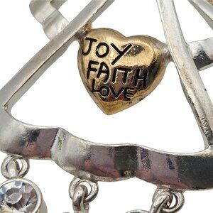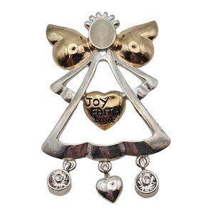 VTG Brooch Silver/Gold Toned Angel Love Faith Joy Dangle Charm Christian Faith