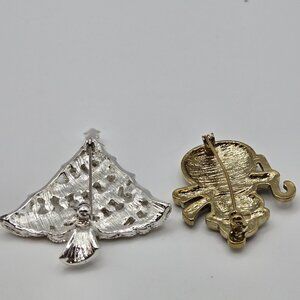 VTG Brooches Christmas 2PC Set Frosted Sugar Enamel Snowman Christmas Tree Pins