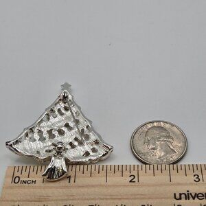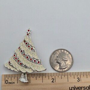 • (1) Unsigned Frosted Sugar Enamel Christmas Tree Red Rhinestone Brooch