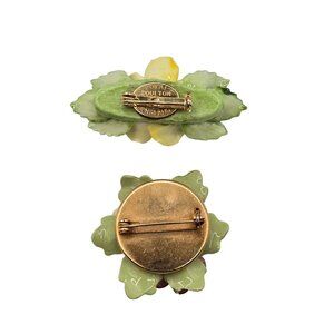 * (1) Signed Royal Doulton Bone China White Flower Bud + Leaf Brooch
