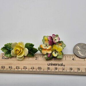 VTG Brooches Royal Doulton England Porcelain Gold Tone Bone China Floral Granny