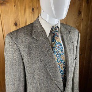 VTG Brooks Brothers Brooksgate Blazer Jacket Suit Coat Gray Herringbone USA 44R