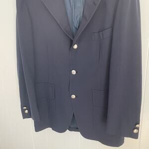 Condition: Pre-owned vintage. Buttons appear to have been replaced with plain silver metal buttons (Brooks Brothers traditionally used gold-tone crest buttons). Light wear and small flaws throughout consistent with age/use — see photos for details. Still structurally sound and very wearable with plenty of life left.