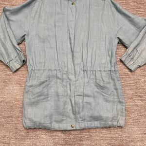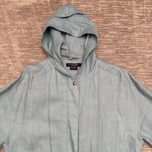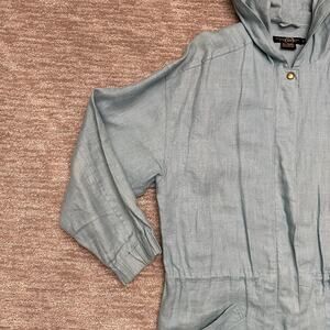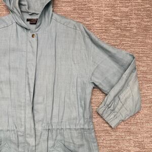 VTG Brooks Brothers Jacket Womens S Light Blue Drawstring Pockets Hooded Linen
