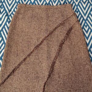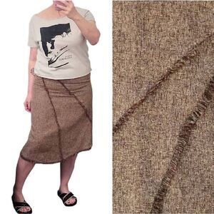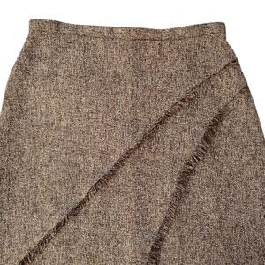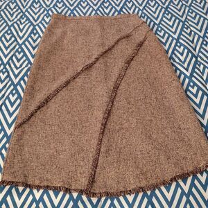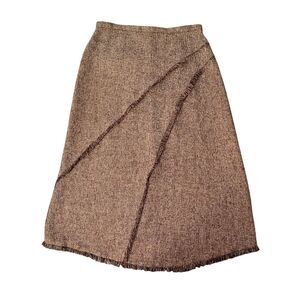 VTG Brown Boho Tweed Fringe Trim High Rise Midi Skirt Size 6