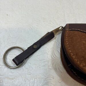 VTG Brown Leather Suede Coin Wallet Change Zip Purse Pouch Key Chain